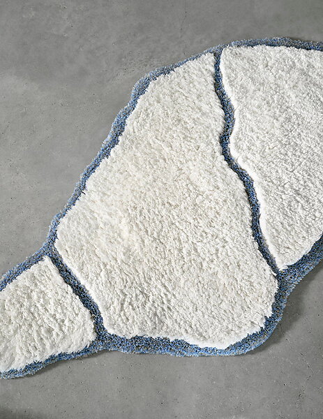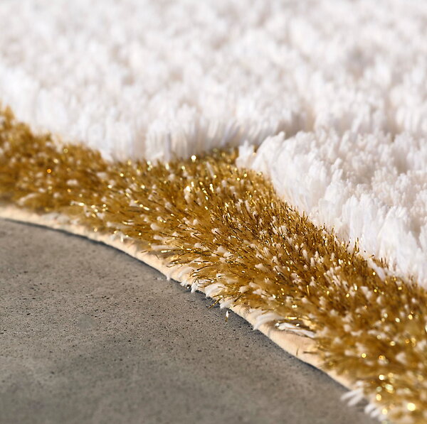 Made with 70% Giza Egyptian cotton, 25% acrylic, and 5% Lurex, the Jess rug offers a plush, absorbent texture and a subtle sheen border that enhances its natural contours. At 2500 gsm, it provides exceptional softness and density, while the slip-resistant backing ensures stability and everyday functionality. The crisp white background acts as a serene canvas, allowing the warm or cool edging tones to highlight the rug's sculptural shape and textural detailing.