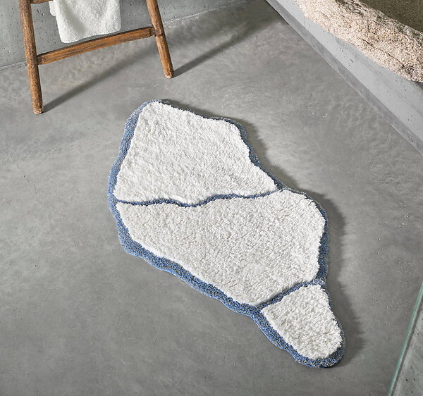 The Abyss Habidecor Jess Bath Rug captures the essence of natural landscapes with its irregular, organic silhouette. Measuring 27x53", its softly contoured form mimics broken stone, driftwood, or cracked earth, bringing a sense of fluid movement and natural imperfection to any space. Gently curving segment lines create a layered, landform-like texture, transforming a functional bath rug into a striking design element. Available in two versatile tones-warm golden ochre or cool oceanic blue-this rug evokes both desert and coast, stone and water, earth and sky.