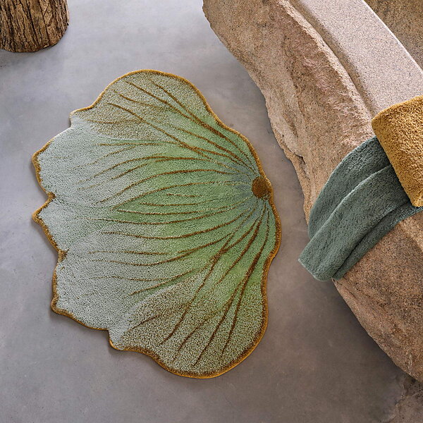 A gradient of lush greens-from moss and sage to soft mint-paired with delicate gold accents, creates a palette that feels earthy, calming, and fresh. This nature-inspired combination complements stone, wood, and neutral interiors effortlessly. The Lotus Bath Rug doesn't just decorate a space-it grounds it in organic beauty, turning your bathroom into a sanctuary of balance and renewal.