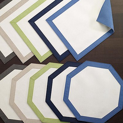 These 15 x 15" octaganol placemats are made of 100% Phthalate free vinyl for easy care, just wipe with a damp cloth. The material is flexible and features a lightly textured surface. The reverse sides are solid matching the border. Made in Turkey. Click link to view other Bodrum Placemats