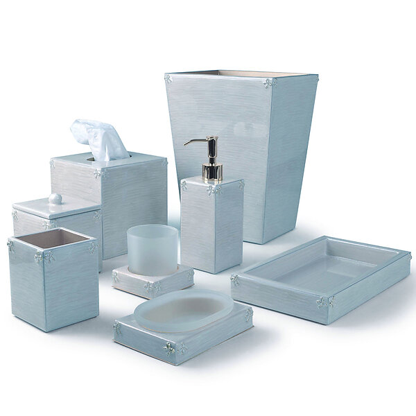 The Mike and Ally Lola Bath Collection transforms an ordinary bathroom into a glamorous sanctuary. Each piece is hand-enameled in the USA in your choice of 48 curated colors, designed to complement both modern and classic interiors. Delicately accented with handset pavé bows, Lola captures the feminine charm of timeless fashion-romantic, playful, and irresistibly elegant. The subtle sparkle of each bow adds a touch of whimsy, bringing soft movement and texture to your vanity or bath space. All items sold individually. Made to order in the USA, usually ships in 4-6 weeks.