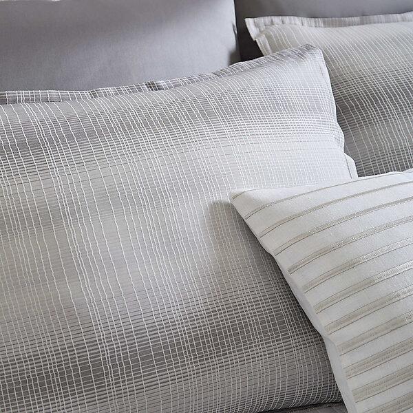 The Sferra Perugia Collection finds its beauty in quiet detail. Its woven lines ripple softly across the surface like shadows at dusk, creating a sense of movement and depth that feels both serene and sophisticated. The design's lunar tone enhances its tranquil character, inviting a sense of calm into the bedroom. This delicate interplay of light and texture transforms the bed into a serene focal point, balancing simplicity with understated elegance.