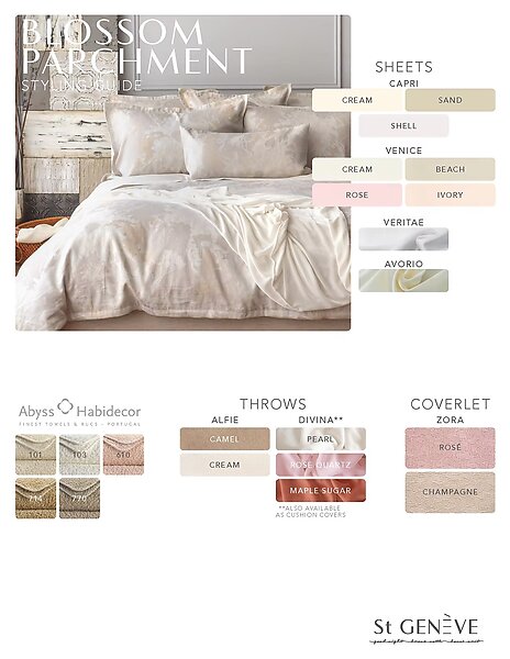 St Genève Blossom Parchment - Quiet Luxury in Every Detail Elegant florals. Warm neutrals. Timeless serenity.