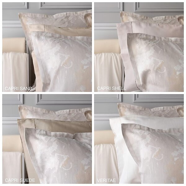 The St Genève Blossom Parchment collection embodies the art of subtlety. Its abstract floral pattern flows gracefully across a luminous jacquard surface, creating a serene interplay of tone and texture. Inspired by soft light filtering through petals, large-scale blossoms and foliage emerge gently from the fabric, their edges fading seamlessly into the background. The warm parchment beige, ivory, soft cream, and muted sand tones blend together, evoking sunlight on linen and timeless sophistication. The result is an elegant, romantic, and modern design that brings quiet refinement to any bedroom. Made to order in Canada, usually ships in 4-6 weeks.