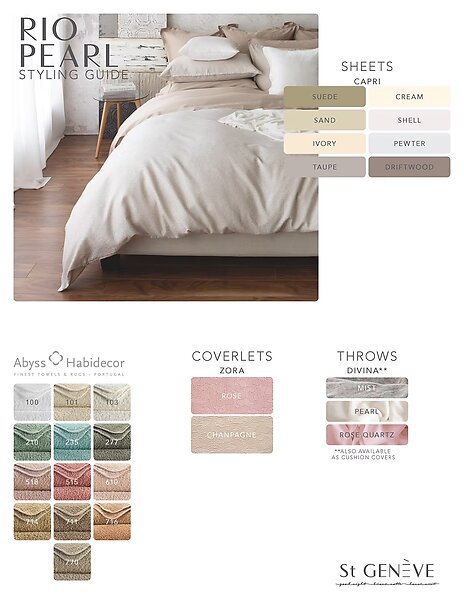- Please see St Geneve Capri Suede, Cream, Sand, Shell, Ivory, Pewter, Taupe, Driftwood for coordinating sheets and pillowcases.
